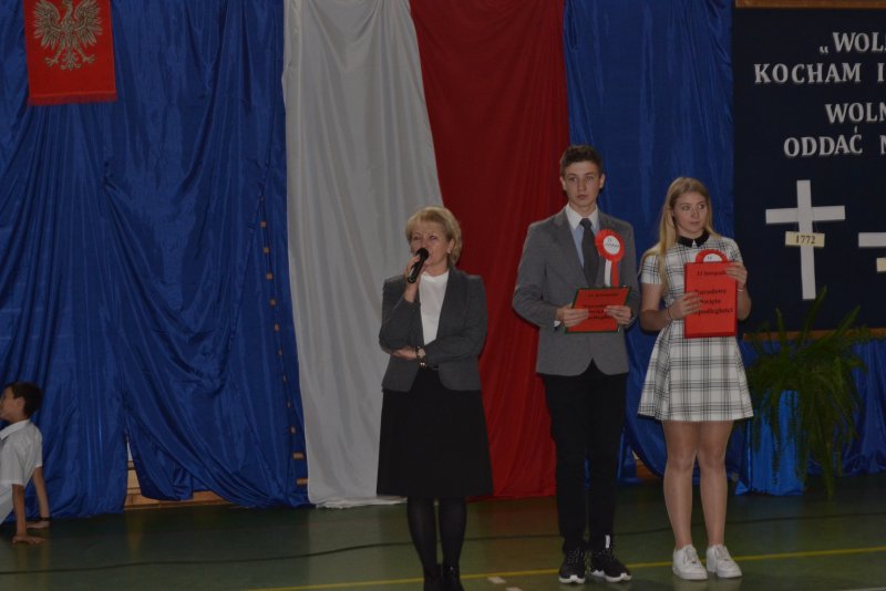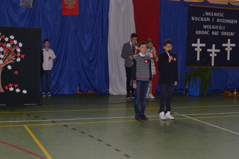 Głównym punktem tego dnia była uroczysta akademia przygotowana przez uczniów klas szóstych pod przewodnictwem pani Moniki Skowron i Krystyny Adamskiej. Apel miał na celu uświadomienie młodzieży, jak ciężko odzyskać swobodę życia po 123 latach zaborów. Młodzież przygotowująca akademię zadbała o odpowiedni nastrój poprzez ukazanie w sposób symboliczny scen historycznych. Niemały udział w tych scenkach miała muzyka, która wprowadzała odpowiedni klimat. Ponadto pojawiły się przepięknie wyrecytowane utwory patriotyczne, pieśni w wykonaniu uczniów klas szóstych oraz rys historyczny przedstawiony przez prowadzących.