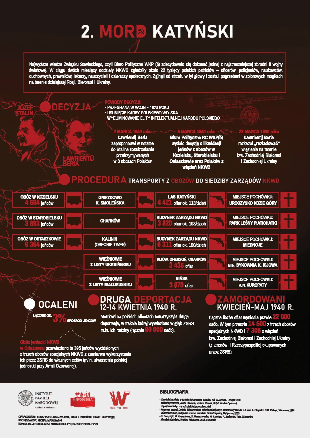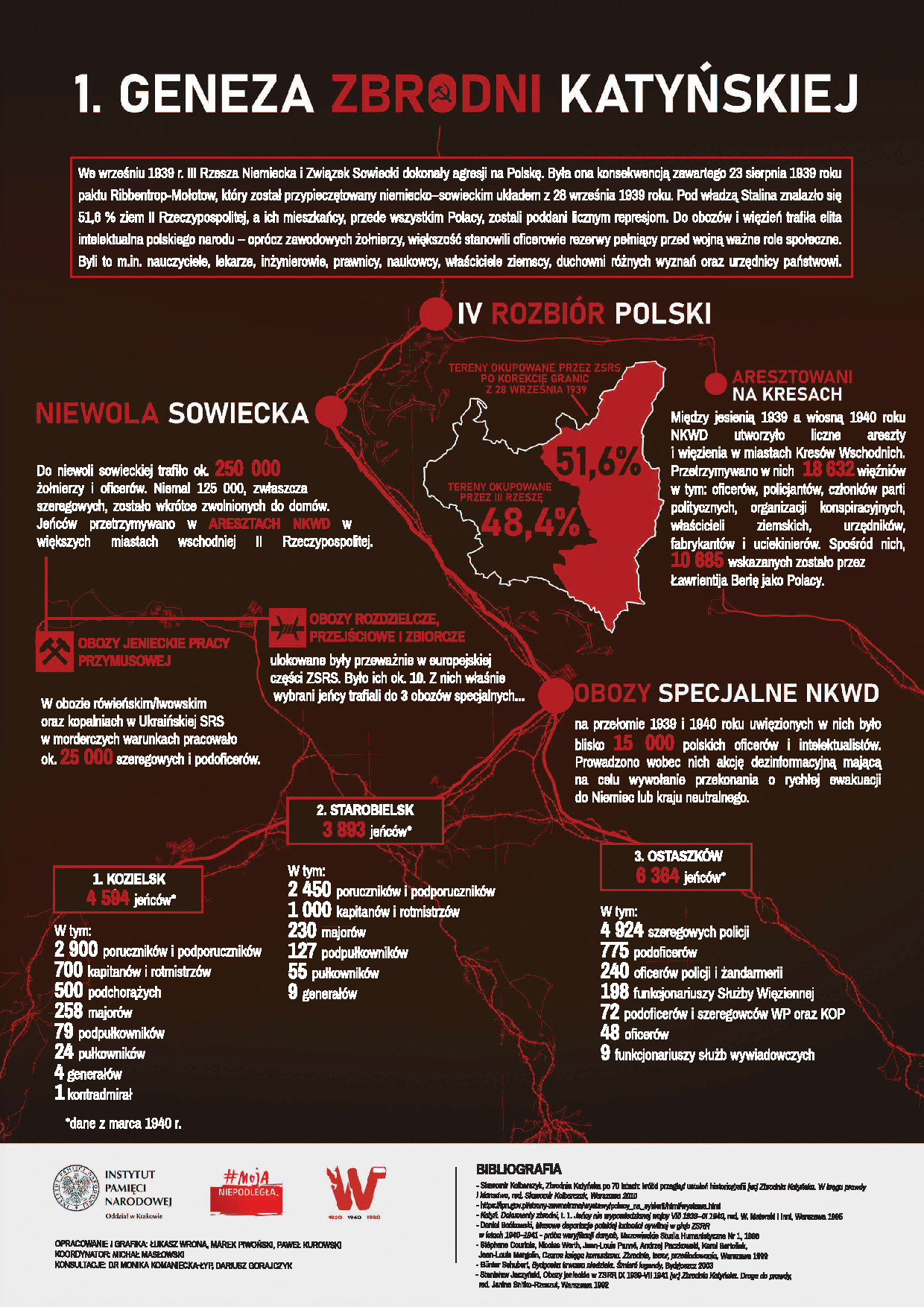W tym roku mija także inna ważna rocznica - 13 kwietnia w Polsce jest obchodzony Dzień Pamięci Ofiar Zbrodni Katyńskiej. Jak czytamy w materiałach edukacyjnych Instytutu Pamięci Narodowej, Sowieci zabijali ponad 100 osób dziennie, a w ciągu miesiąca ich ofiarą padło prawie 22 000 obywateli II RP. Mord katyński to nie tylko doły śmierci, ale ogromna fala przesiedleń rodzin ofiar w głąb Związku Sowieckiego.