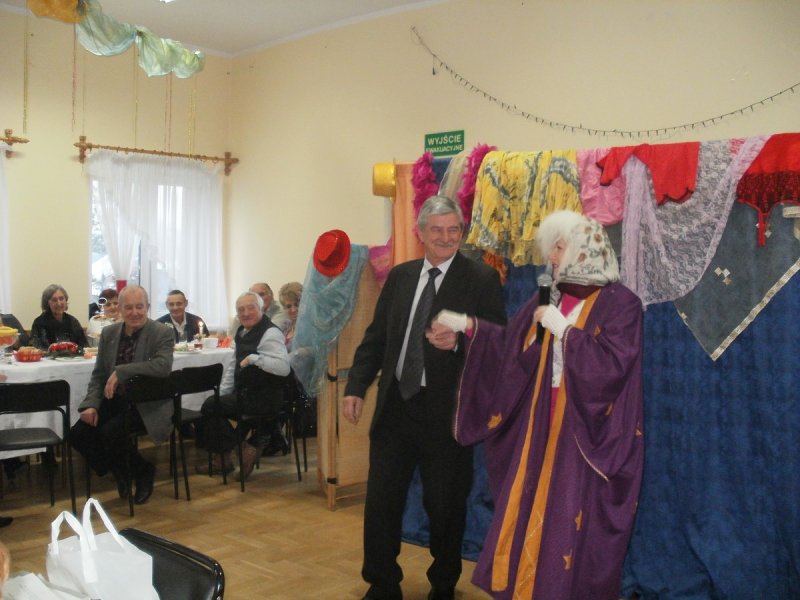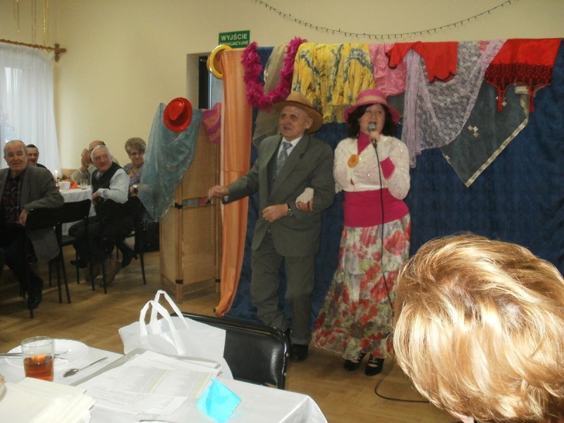 Seniorów bawili kabaretowym występem artyści z Krakowa : Pani Lucyna Rutkowska i Leszek Wilk , dzięki inicjatywie Pani Elżbiety Mostowik Dyrektor ROKu .