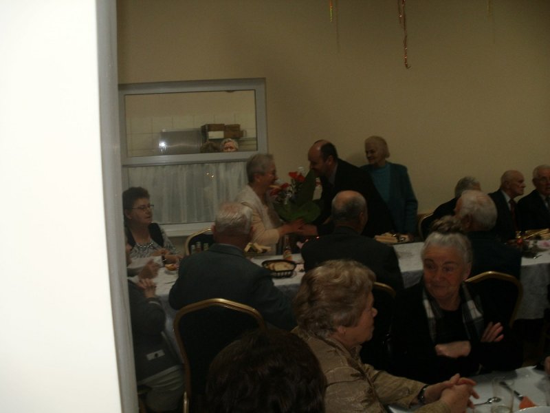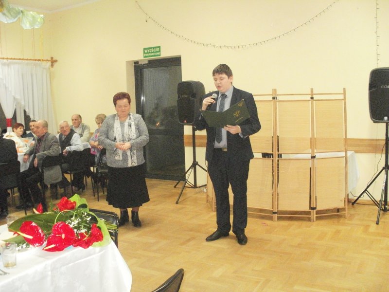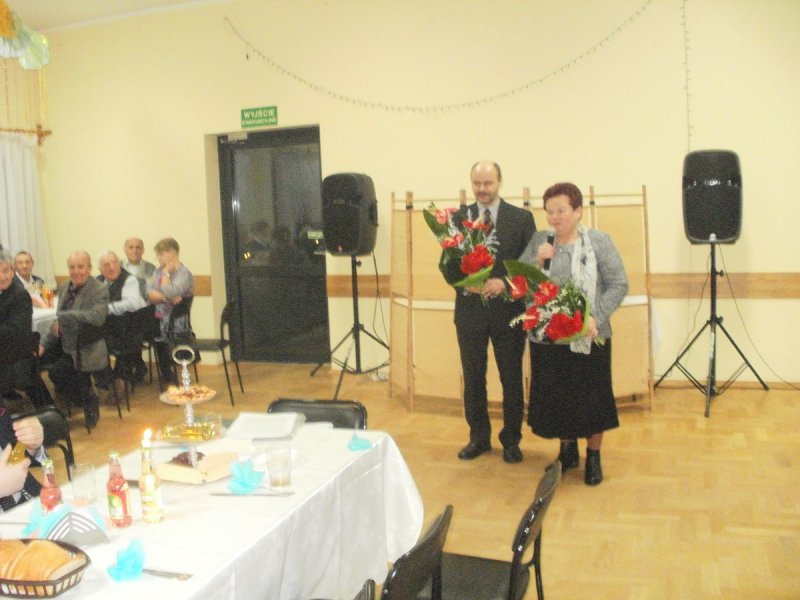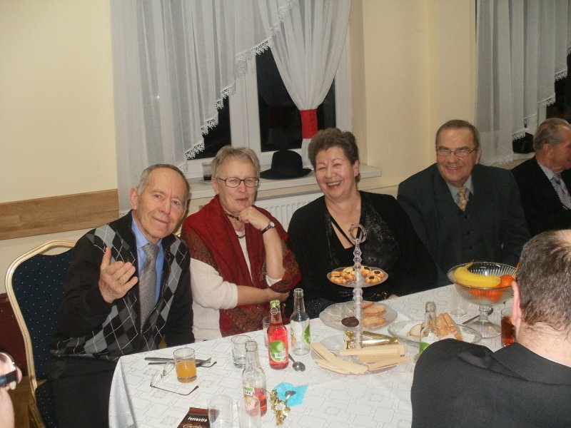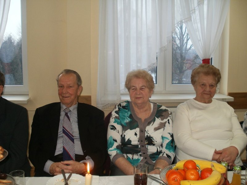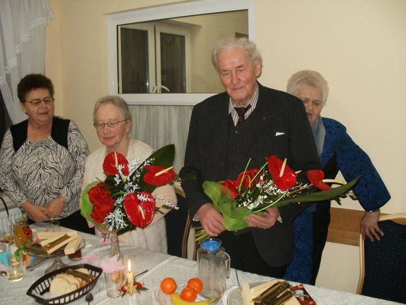 Pani MARIA PINDEL i Pan KAZIMIERZ KRECZMER otrzymali od Burmistrza kwiaty wraz z życzeniami , a wszyscy obecni wznieśli toast za zdrowie i odśpiewali tradycyjne sto lat , a nawet dwieście ,trzysta i czterysta…