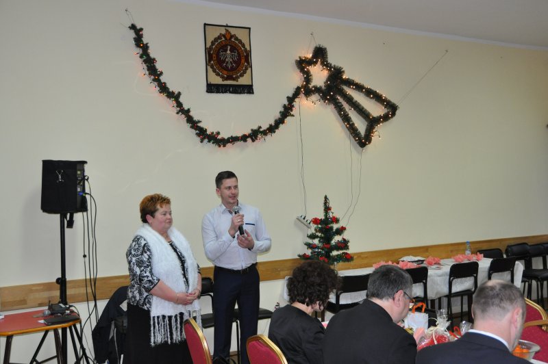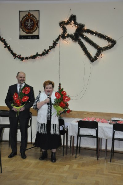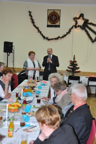 Spotkanie rozpoczęła Orkiestra Dęta działająca przy Regionalnym Ośrodku Kultury, która wg opinii zebranych Seniorów jest naszą dumą i radością. Czternastu pięknie prezentujących się członków orkiestry wzbudzało podziw swoim: strojem, grą i profesjonalizmem. Daria Kubiś brawurowo poprowadziła konkurs na rozpoznawanie instrumentów i granych kolęd. Orkiestra grała rzadko wykonywane kolędy , takie jak „Północ już była” czy „ Narodził się pożądany” Od tego spotkania będziemy też rozróżniać : kornet , klarnet, tubę, puzon, bas, saksofon tenorowy. Najwięcej prawidłowych odpowiedzi udzielił Pan Franciszek Meisner i otrzymał nagrodę książkową.