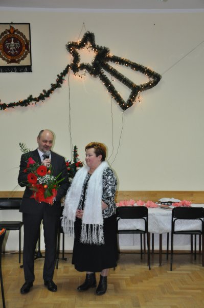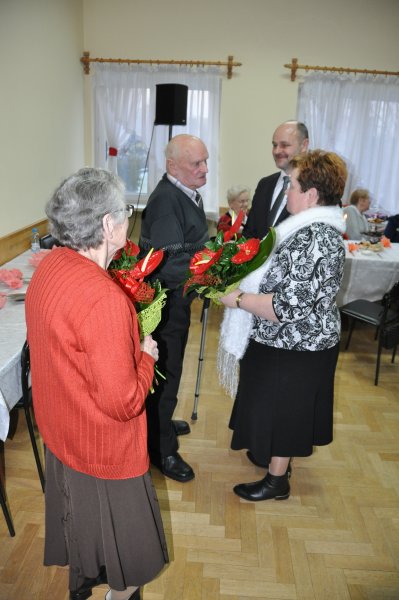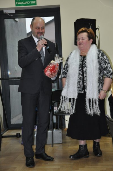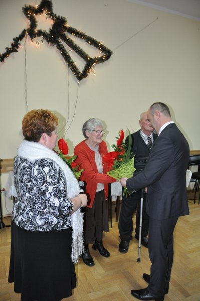 Tradycyjnie też „ Najdostojniejsi seniorzy” ( w tym roku) Pani Janina Celej i Pan Henryk Sermak otrzymali od Burmistrza kwiaty oraz życzenia. Zebrani wznieśli toast za ich zdrowie i zaintonowali „dwieście lat”.