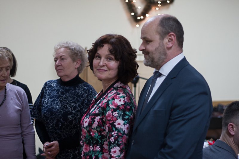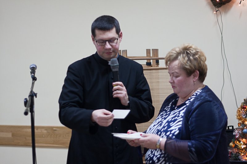 Ksiądz Bartłomiej Bartosik zaprosił do wspólnej modlitwy , po czym pobłogosławił zebranych i opłatki .Dzielenie się opłatkiem i składanie sobie życzeń jest równoznaczne z dzieleniem się sercem, miłością, przebaczaniem, wyciąganiem ręki do bliźniego z uśmiechem i taka atmosfera serdeczności zapanowała i pozostała do końca spotkania.
