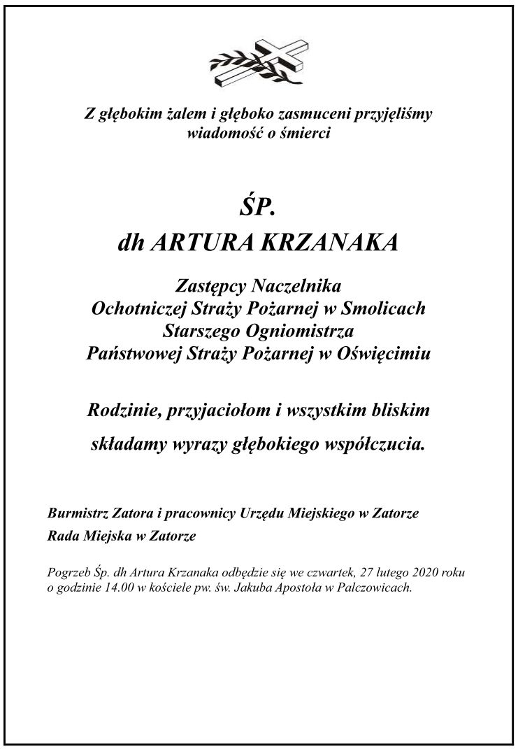 Z głębokim żalem i głęboko zasmuceni przyjęliśmy wiadomość o śmierci ŚP. dh ARTURA KRZANAKA 2020-02-24