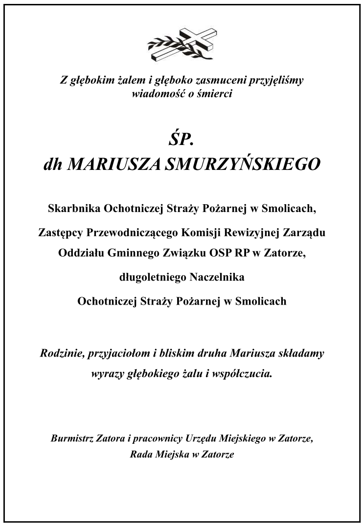 Z głębokim żalem i głęboko zasmuceni przyjęliśmy wiadomość o śmierci ŚP.dh MARIUSZA SMURZYŃSKIEGO 2020-05-13