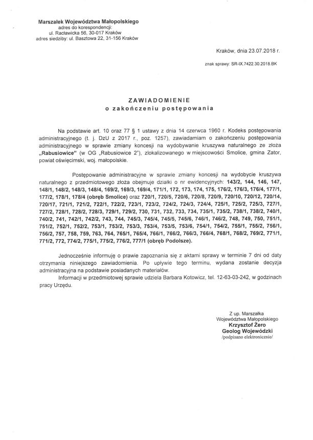 ZAWIADOMIENIE o zakończeniu postępowania 2018-07-25