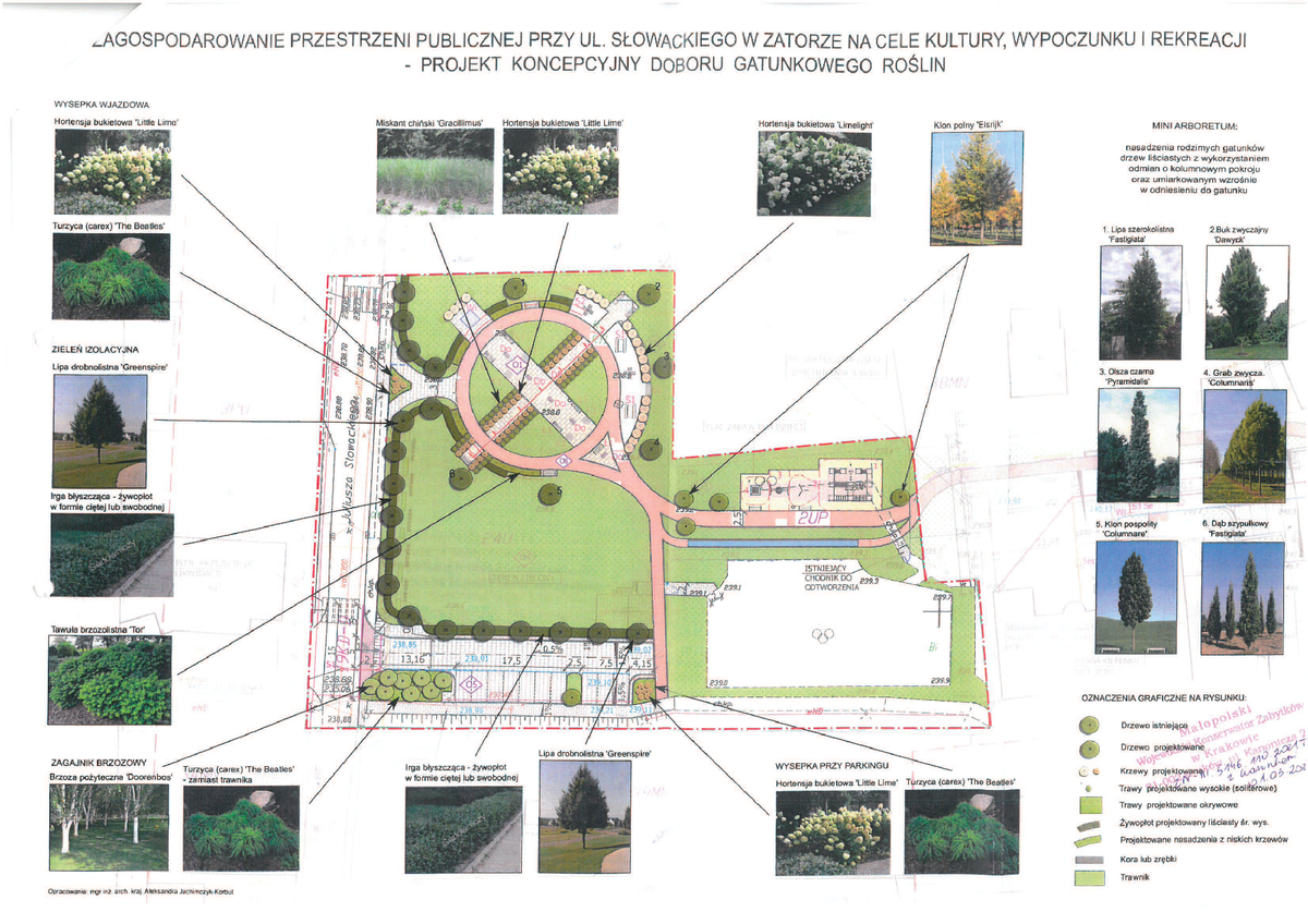 - częściowe nasadzenia zieleni niskiej i wysokiej na terenie planowanego parku