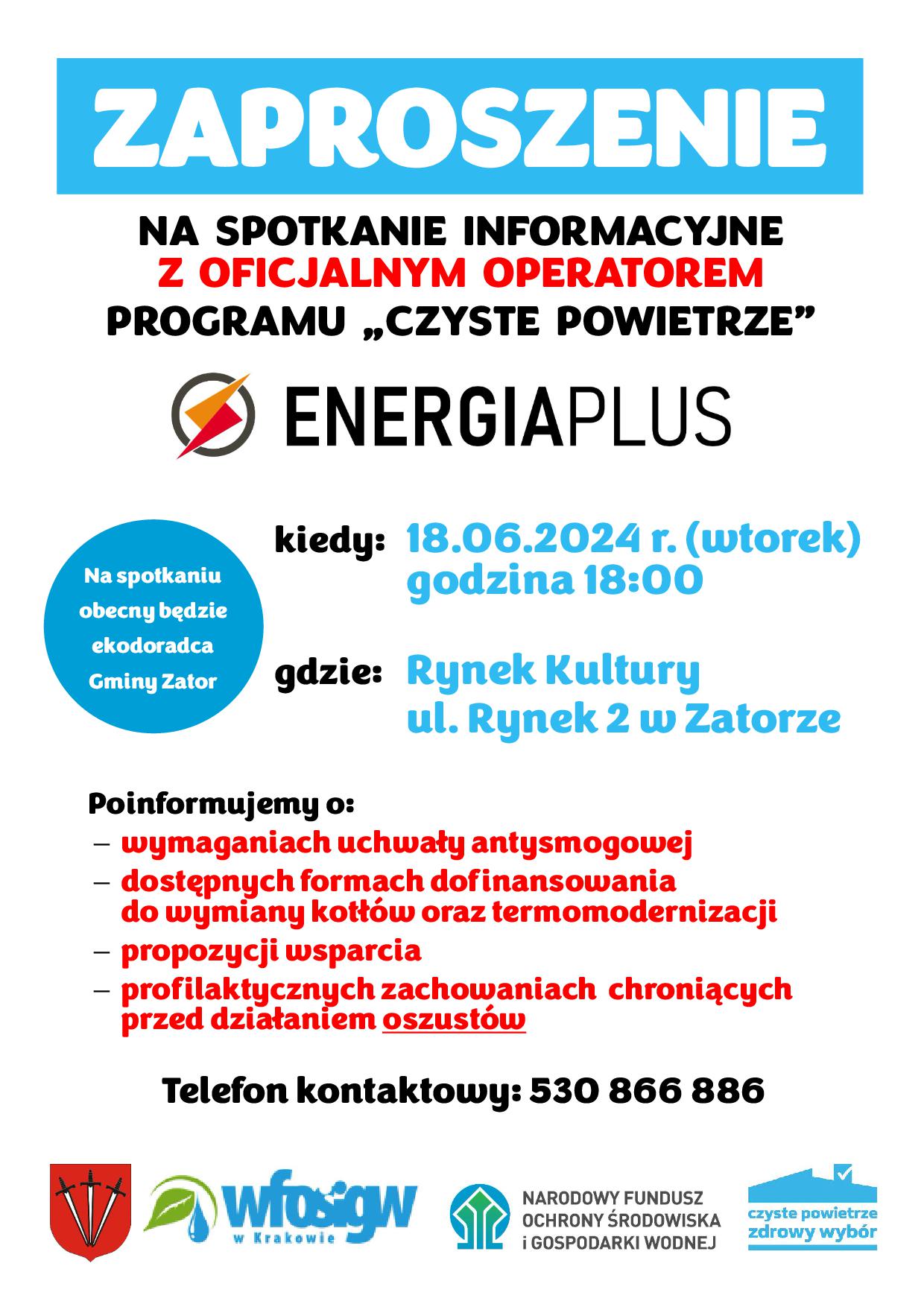 Zaproszenie na spotkanie informacyjne z oficjalnym operatorem Programu Priorytetowego "Czyste Powietrze" 2024-06-17