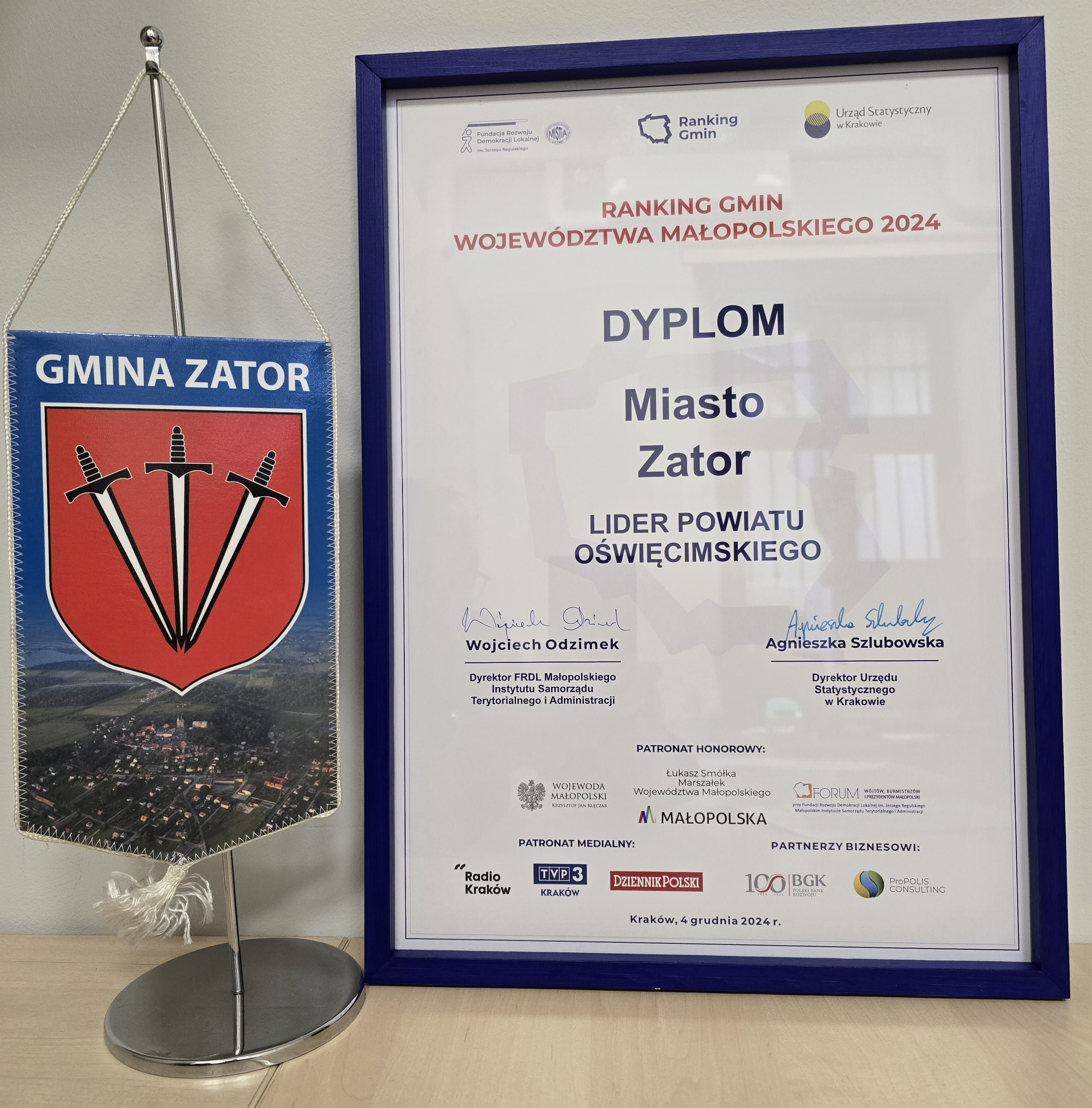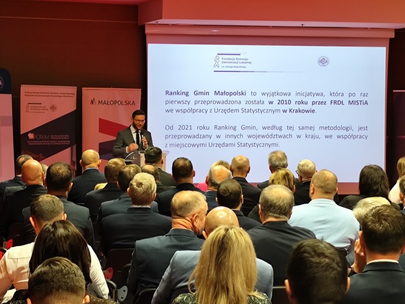4 grudnia w Krakowie odbyła się uroczysta gala Rankingu Gmin Małopolski 2024, organizowanego już od 15. lat przez Fundację Rozwoju Demokracji Lokalnej im. Jerzego Regulskiego Małopolski Instytut Samorządu Terytorialnego i Administracji we współpracy z Urzędem Statystycznym w Krakowie. W spotkaniu wzięli udział przedstawiciele wszystkich gmin z województwa. W gali wzięli udział również Wojewoda Małopolski – Pan Krzysztof Jan Klęczar, Marszałek Województwa Małopolskiego - Pan Łukasz Smółka, Dyrektor Urzędu Statystycznego - Pani Agnieszka Szlubowska.