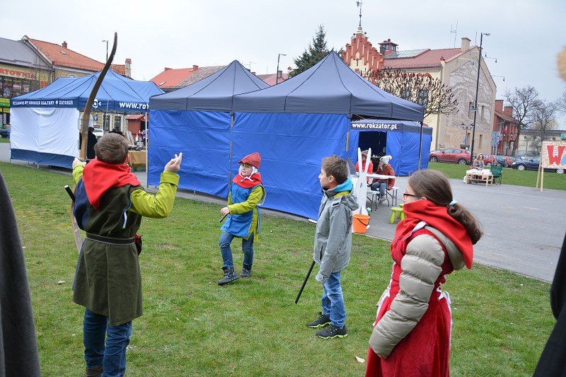 Na Rynku zagościły także stoiska rękodzielnicze ze świątecznymi dekoracjami i ozdobami. Dużą atrakcją była wioska rycerska, w której swój debiut, mieli młodzi uczniowie zatorskiej szkółki rycerskiej. Mimo niesprzyjającej pogody w plenerowej pracowni plastycznej udało się zrobić trochę ozdób wielkanocnych. Został także rozstrzygnięty konkurs na Stroik świąteczny, a oto laureaci: