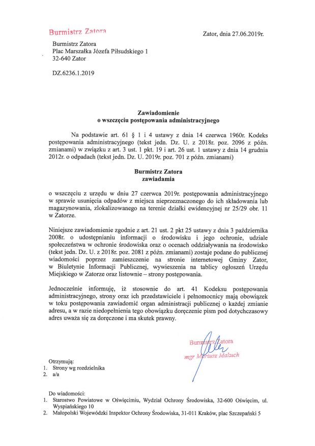 Zawiadomienie o wszczęciu postępowania administracyjnego DZ.6236.1.2019 2019-06-27