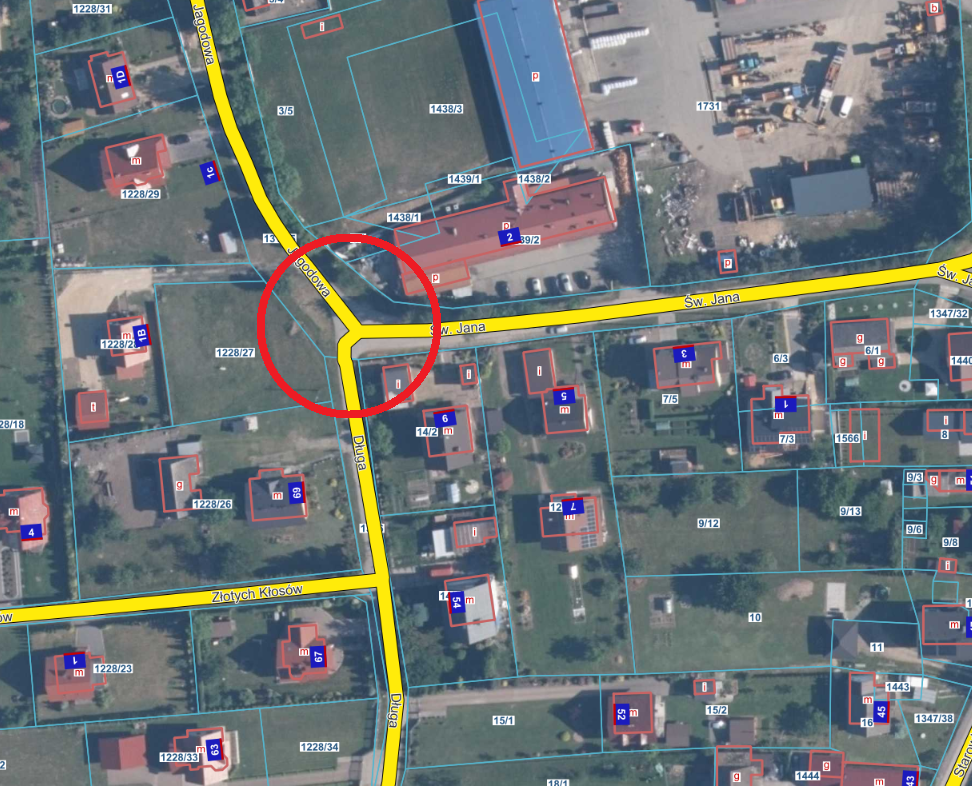 *skrzyżowanie ul. Jagodowej z ul. Św. Jana i ul. Długą w Podolszu