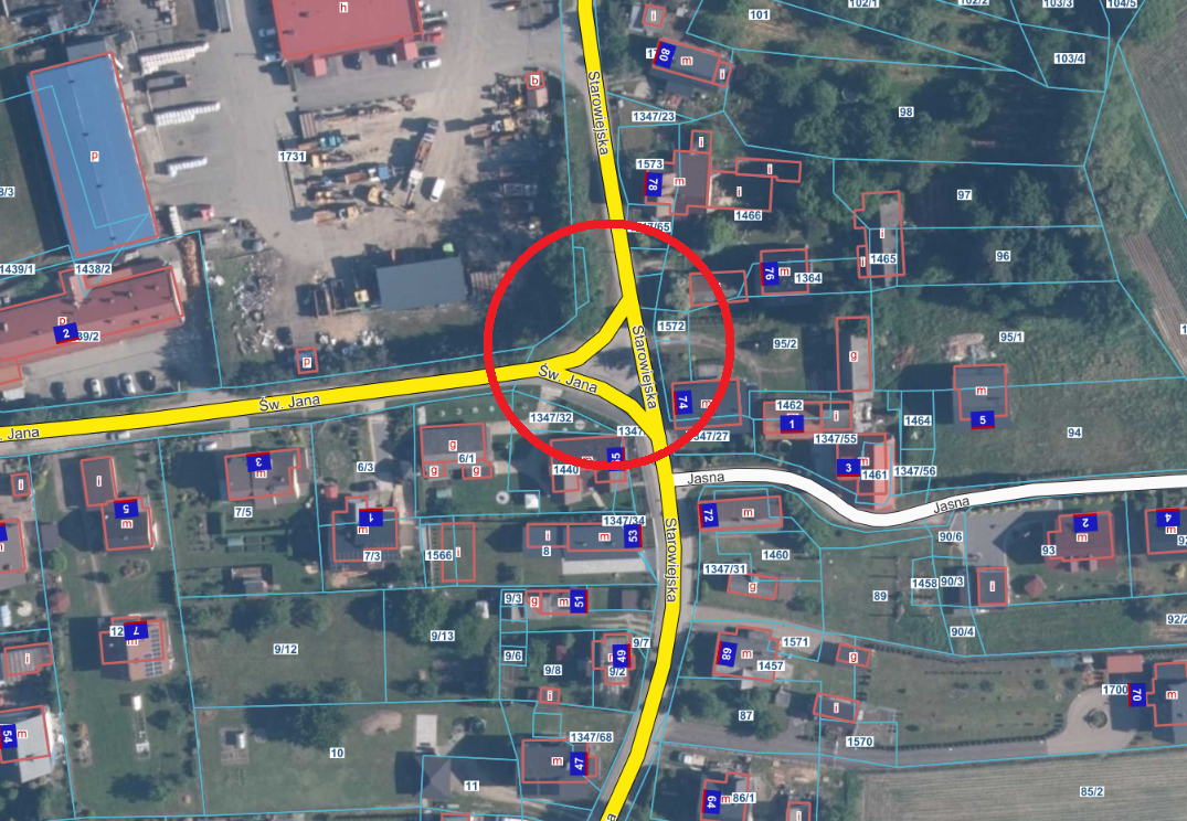 * skrzyżowanie ul. Św. Jana z ul. Starowiejską w Podolszu