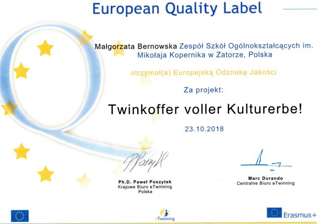 Dodatkowo program e-Twinning realizowany w Zespole Szkół Ogólnokształcących im. Mikołaja Kopernika w Zatorze pozwala na kontakt uczniów z rówieśnikami z innych krajów, dzielenie się poglądami i wiedzą między nauczycielami z różnych szkół. Dzięki e-Twinning nauczyciele poszerzają swoją wiedzę, rodzice są bardziej zaangażowani w życie szkoły, a uczniowie opuszczają jej mury wyposażeni w wiedzę i umiejętności potrzebne w dorosłym życiu.