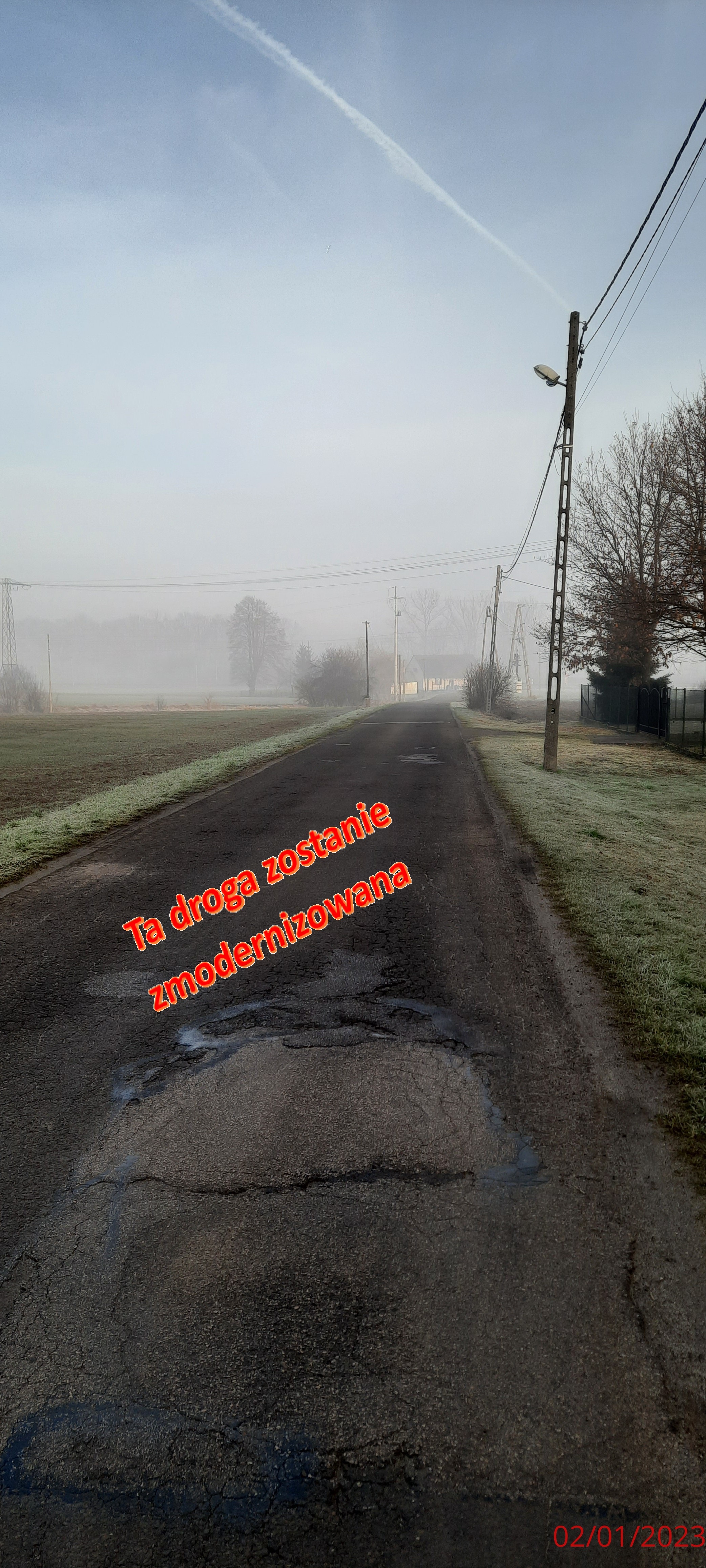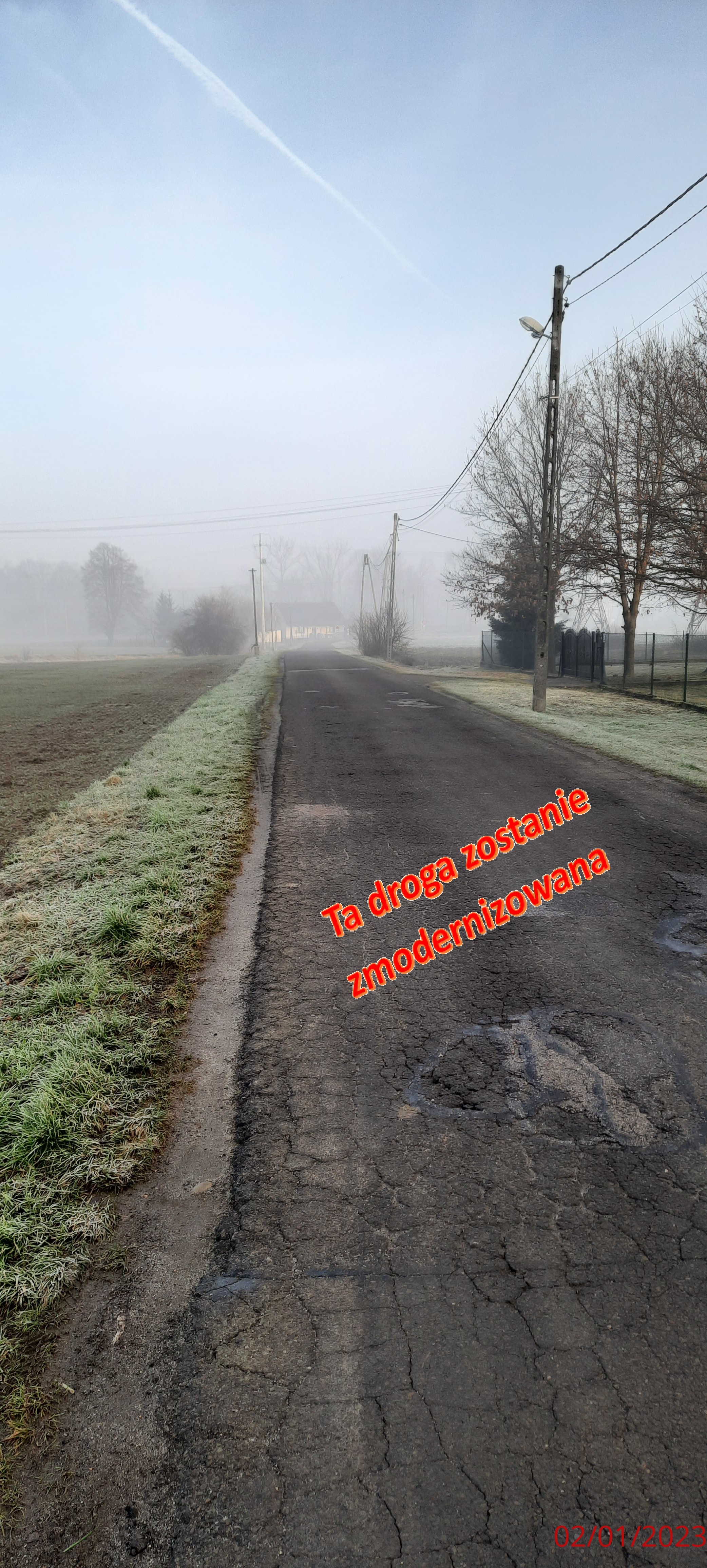 W ramach inwestycji Gmina planuje wykonać nową nawierzchnię asfaltową wraz z podbudową i stabilizacją cementem.