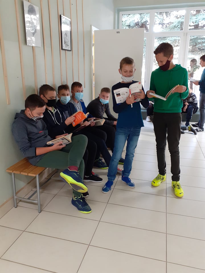 Na każdej przerwie można było zobaczyć uczniów i nauczycieli z książką przyniesioną z domu lub wypożyczoną z biblioteki. Liczba czytających w tym dniu uczniów to aż 377, nie licząc nauczycieli i pozostałych pracowników szkoły. Ponadto w ramach tego wydarzenia koordynator akcji – pani Marta Stramecka wraz z nauczycielami polonistami: panią Izabelą Spisak i Dorotą Czermak oraz bibliotekarzem panią Marią Tatar przygotowały dla uczniów dodatkowe czytelnicze atrakcje. Na jednej z przerw na każdym korytarzu znajdowało się stoisko, przy którym uczniowie zmagali się z różnorodnymi zadaniami, quizami, konkursami sprawdzającymi znajomość lektur. Zadania na stoiskach dostosowane były do wieku uczniów. Wśród quizów największą popularnością cieszył się „Harry Potter” i „Zmierzch”, nie zabrakło też fanów „Mitologii” oraz baśni czy legend. Jedną z konkurencji była gra w klasy, podczas której chętni uczniowie mieli za zadanie przejść wyznaczoną trasą z książką na głowie. Nagrody i dyplomy można było również otrzymać, przebierając się za wybraną postać literacką. To sprawiło, że na szkolnym korytarzu można było spotkać Harrego Pottera, Plastusia, Pipi Langstrumpf, księżniczki, rycerzy, włóczykija i inne postacie.