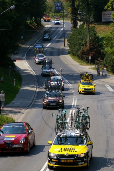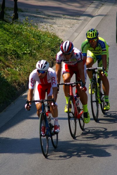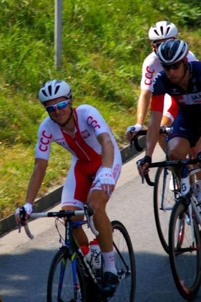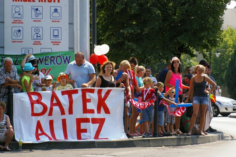 Tour de Pologne UCI World Tour - dzisiaj kolarze i ekipy przemknęły przez Zator. Nasz zatorski uczestnik touru Darek Batek, reprezentujący Polskę, znalazł chwilkę czasu by przytulić stojącą w tłumie żonę Monikę z córeczką Zosią. A potem cały peleton pomknął w stronę Nowego Sącza, goniąc oddaloną o siedem minut, trzyosobową ucieczkę.