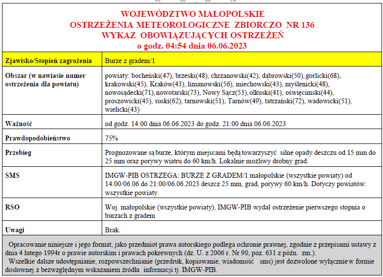 W związku z powyższym proszę podjąć stosowne działania zapobiegawcze i ostrzegawcze związane z ostrzeżeniem ludności oraz przygotować odpowiednie służby.