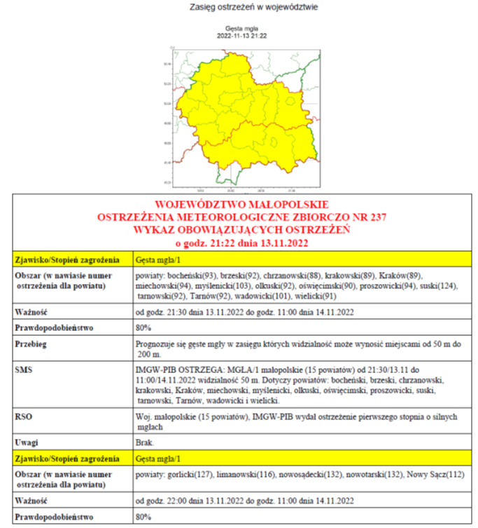 W związku z powyższym proszę podjąć stosowne działania zapobiegawcze i ostrzegawcze związane z ostrzeżeniem ludności oraz przygotować odpowiednie służby.
