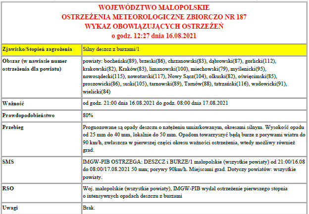 Ostrzeżenie meteorologiczne: Silny deszcz z burzami/1