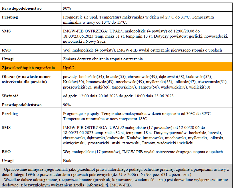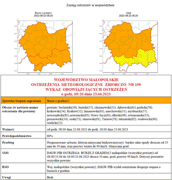 OSTRZEŻENIA METEOROLOGICZNE ZBIORCZO NR 156
