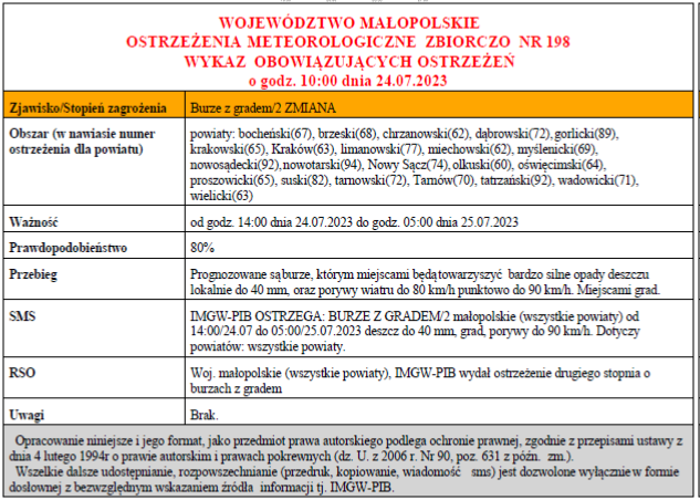 W związku z powyższym proszę podjąć stosowne działania zapobiegawcze i ostrzegawcze związane z ostrzeżeniem ludności oraz przygotować odpowiednie służby.
