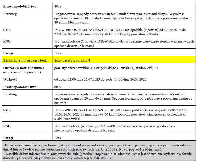 W związku z powyższym proszę podjąć stosowne działania zapobiegawcze i ostrzegawcze związane z ostrzeżeniem ludności oraz przygotować odpowiednie służby.