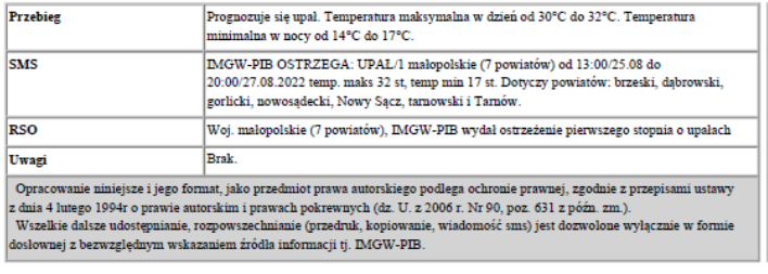 W związku z powyższym proszę podjąć stosowne działania zapobiegawcze i ostrzegawcze związane z ostrzeżeniem ludności oraz przygotować odpowiednie służby.