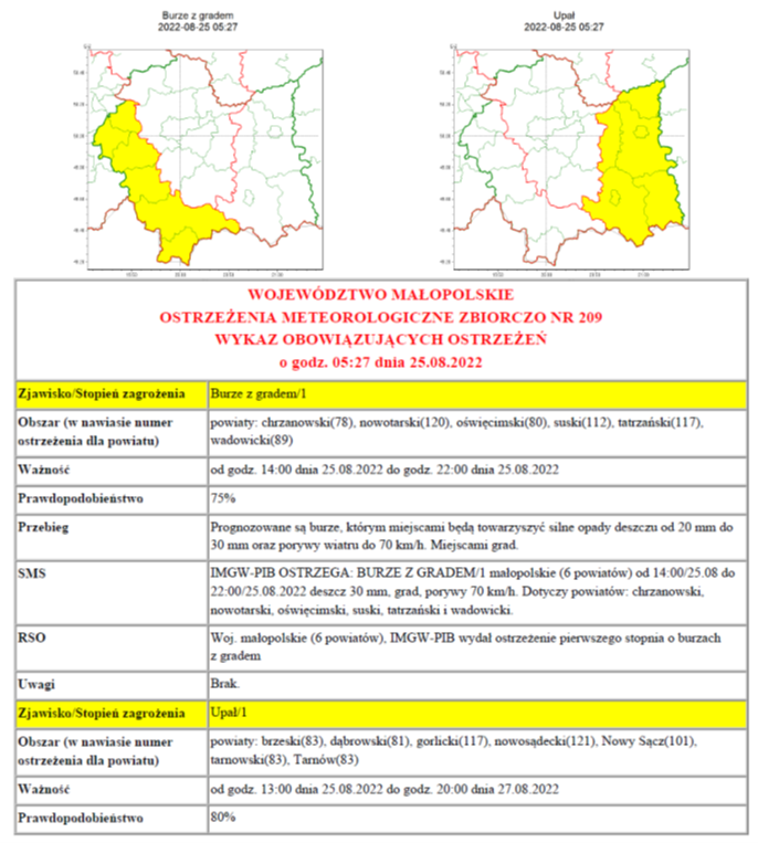 Ostrzeżenie meteorologiczne nr 209 - Burze z gradem 1 2022-08-25