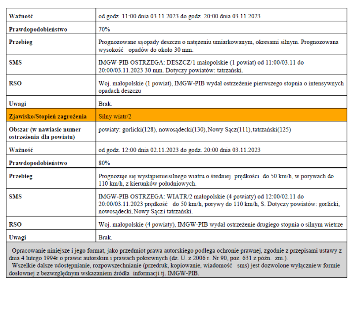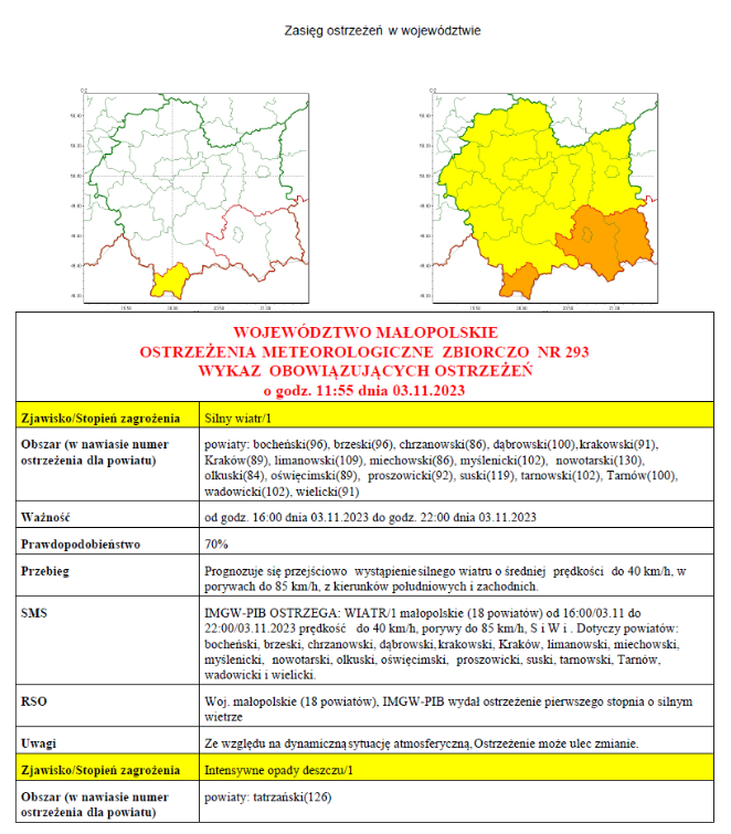 Prognozuje się przejściowo wystąpienie silnego wiatru o średniej prędkości...