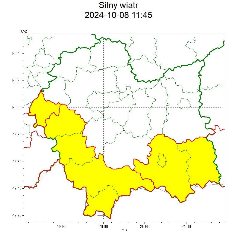 RSO Woj. małopolskie (4 powiaty), IMGW-PIB wydał ostrzeżenie pierwszego stopnia o silnym wietrze