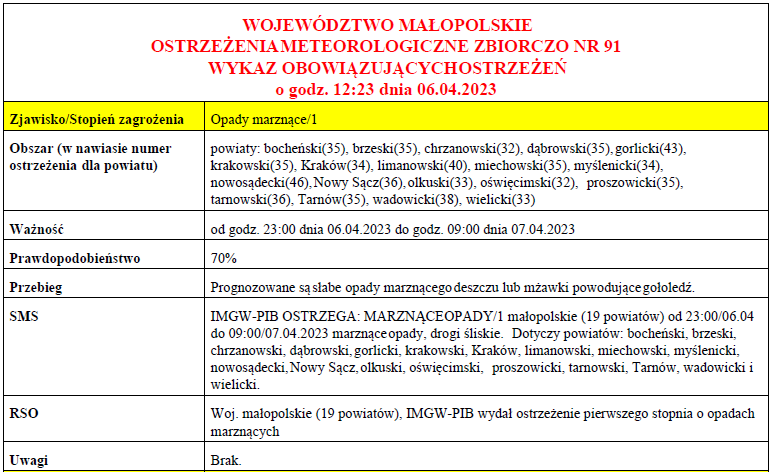 W związku z powyższym proszę podjąć stosowne działania zapobiegawcze i ostrzegawcze związane z ostrzeżeniem ludności oraz przygotować odpowiednie służby.