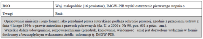 W związku z powyższym proszę podjąć stosowne działania zapobiegawcze i ostrzegawcze związane z ostrzeżeniem ludności oraz przygotować odpowiednie służby.