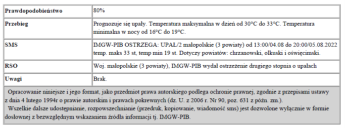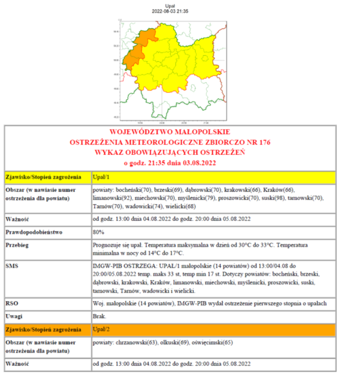 W związku z powyższym proszę podjąć stosowne działania zapobiegawcze i ostrzegawcze związane z ostrzeżeniem ludności oraz przygotować odpowiednie służby.