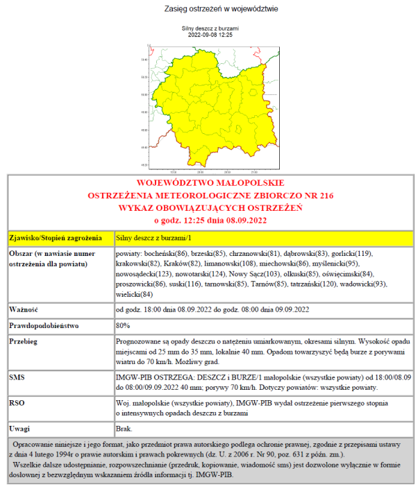 W związku z powyższym proszę podjąć stosowne działania zapobiegawcze i ostrzegawcze związane z ostrzeżeniem ludności oraz przygotować odpowiednie służby.