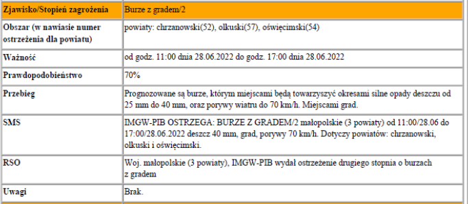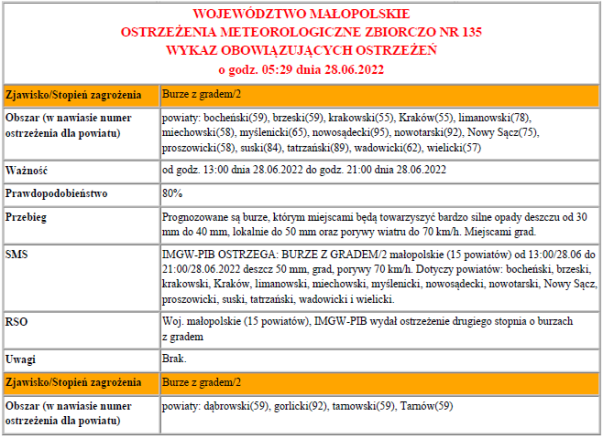 W związku z powyższym proszę podjąć stosowne działania zapobiegawcze i ostrzegawcze związane z ostrzeżeniem ludności oraz przygotować odpowiednie służby.