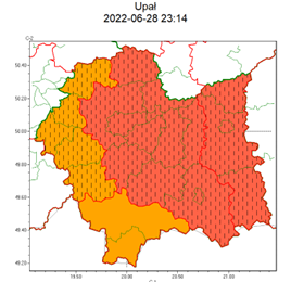 SMS IMGW-PIB OSTRZEGA: UPAŁ/3 małopolskie (4 powiaty) od 23:14/28.06 do 20:00/01.07.2022