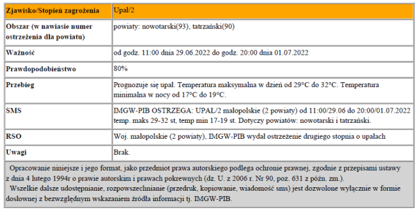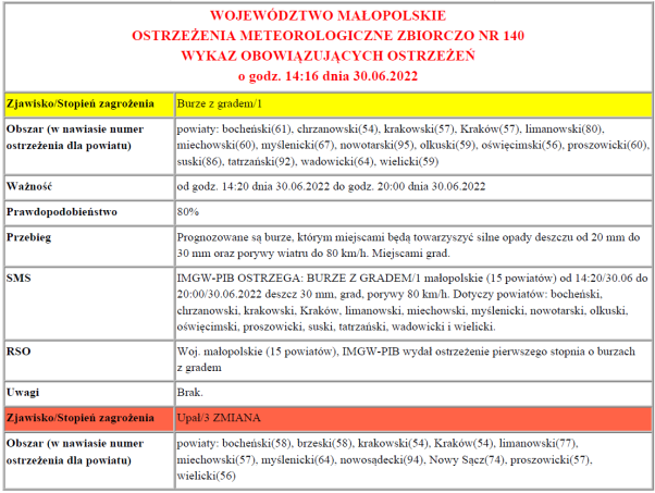W związku z powyższym proszę podjąć stosowne działania zapobiegawcze i ostrzegawcze związane z ostrzeżeniem ludności oraz przygotować odpowiednie służby.