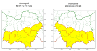 RSO Woj. małopolskie (10 powiatów), IMGW-PIB wydał ostrzeżenie pierwszego stopnia o