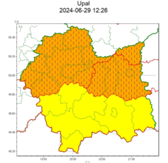 SMS IMGW-PIB OSTRZEGA: UPAŁ/2 małopolskie (14 powiatów) od 12:19/29.06 do 20:00/30.06.2024 temp. maks 35 st, temp min 18 st. Dotyczy powiatów: bocheński, brzeski, chrzanowski, dąbrowski, krakowski, Kraków, miechowski, olkuski, oświęcimski, proszowicki, tarnowski, Tarnów, wadowicki i wielicki.