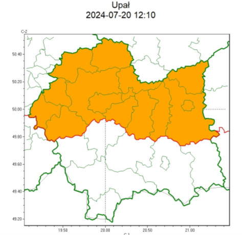 SMS IMGW-PIB OSTRZEGA: UPAŁ/2 małopolskie (14 powiatów) od 12:00/21.07 do 20:00/22.07.2024 temp. maks 33 st, temp min 18 st. Dotyczy powiatów: bocheński, brzeski, chrzanowski, dąbrowski, krakowski, Kraków, miechowski, olkuski, oświęcimski, proszowicki, tarnowski, Tarnów, wadowicki i wielicki.