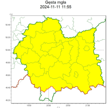 RSO Woj. małopolskie (21 powiatów), IMGW-PIB wydał ostrzeżenie pierwszego stopnia o silnych mgłach