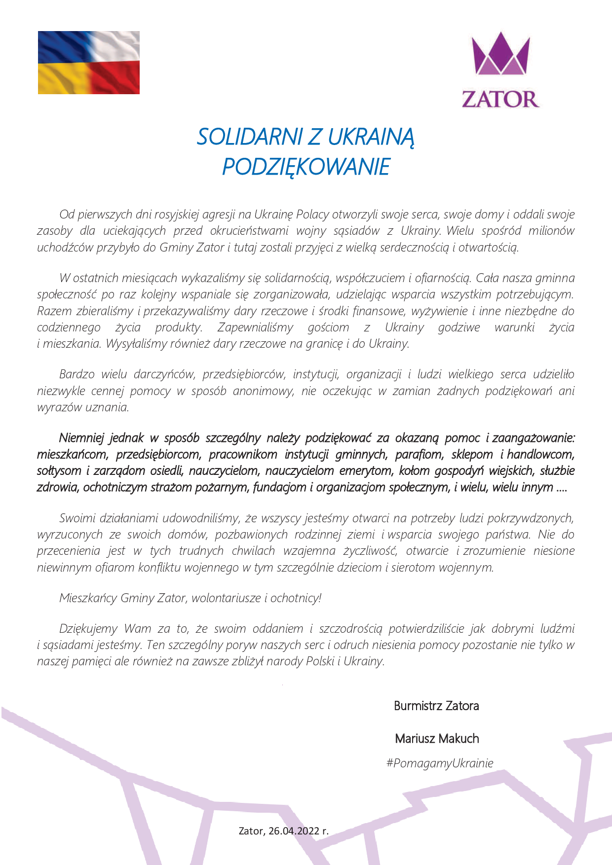 SOLIDARNI Z UKRAINĄ PODZIĘKOWANIE 2022-04-26